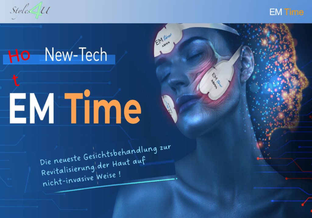 EM-Time ist eine Methode, die die Kraft eines starken elektrischen Feldes nutzt, um die Gesichtsmuskulatur zu stimulieren und so den Fettverbrauch zu beschleunigen. Es hilft dabei, Gesichtsfett zu reduzieren durch die Radiofrequenz-Anstellung und einen schnellen Schlankheitseffekt im Gesicht zu erzielen (beim Wunsch).